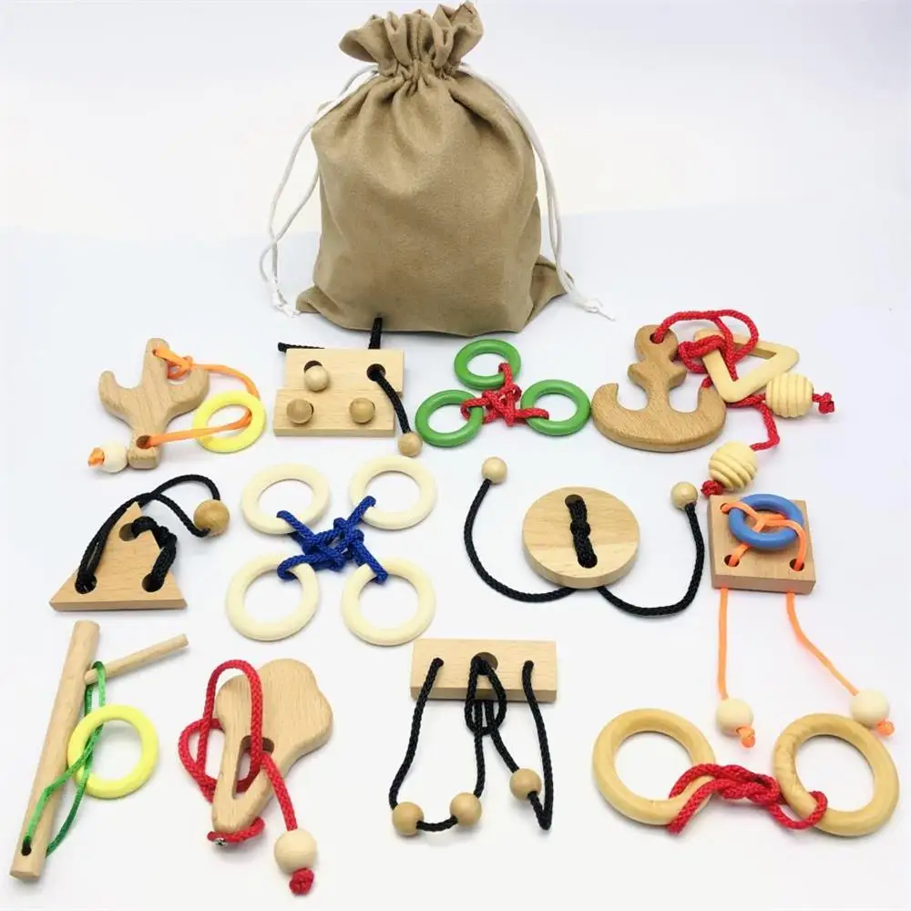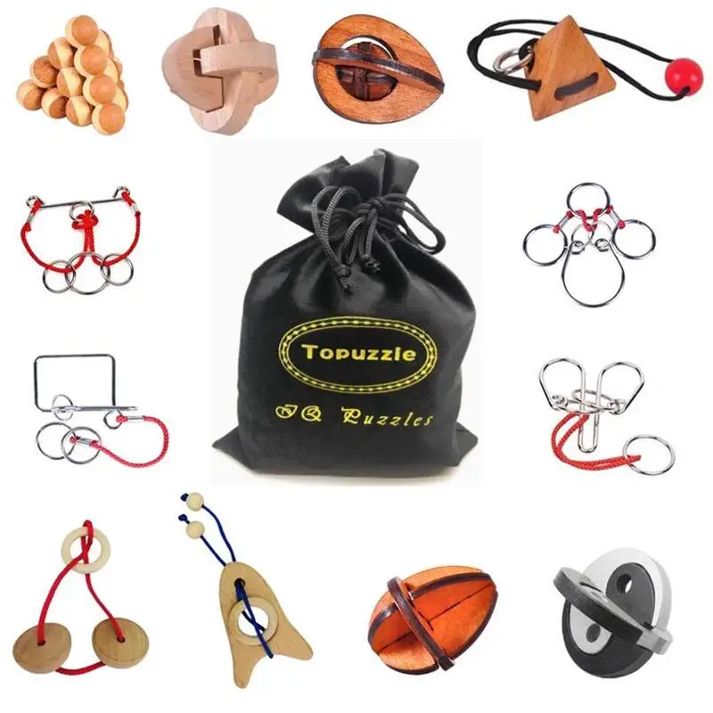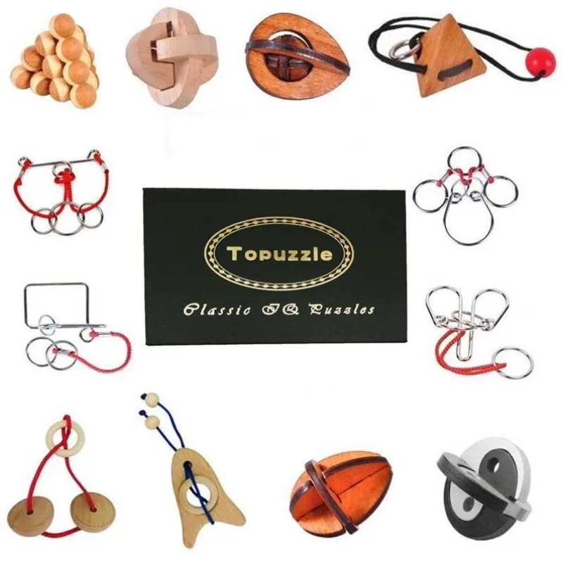 Sett 9: 12 stk Blandet Tre Metall Puslespill Emballasje: Oppbevaringspose + Gaveeske